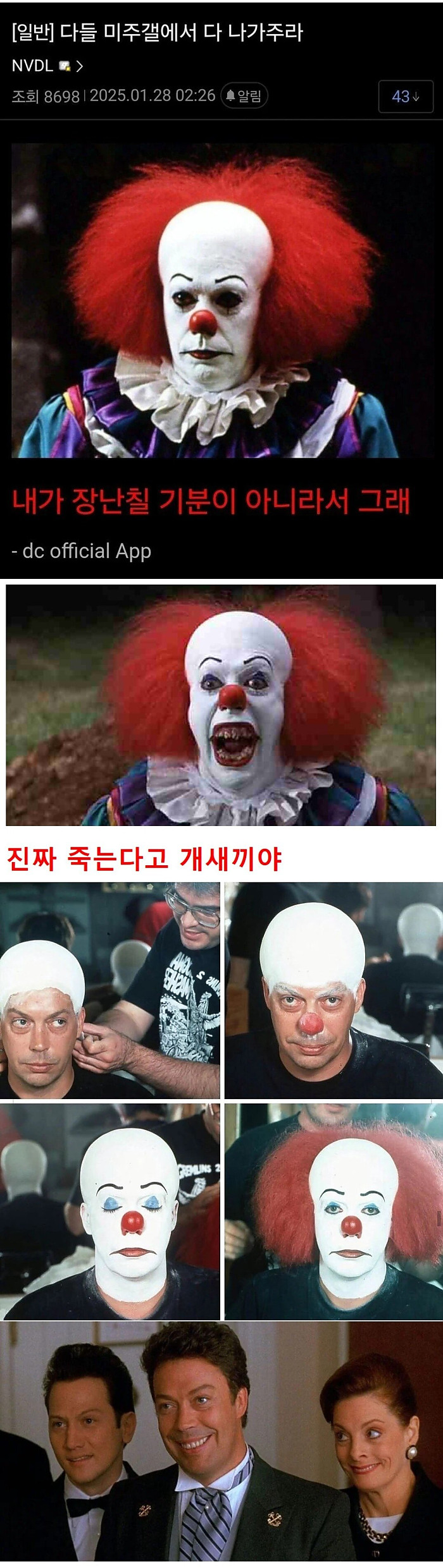 미장 하락에 짤로 자주나오는 광대의 정체 작성자 정보 적중마스터 작성 작성일 2025.08.15 09:44 컨텐츠 정보 972 조회 목록 본문 광대를 봐도 안무서워 관련자료 댓글 0 등록된 댓글이 없습니다. 로그인한 회원만 댓글 등록이 가능합니다. 목록