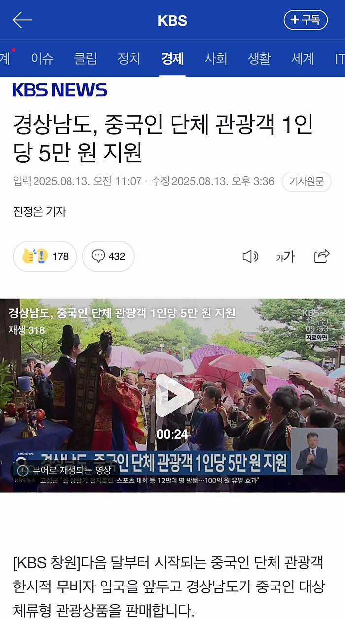 경상남도, 중국인 단체 관광객 1인당 5만 원 지원 작성자 정보 동해번쩍서해번쩍 작성 작성일 2025.08.14 15:31 컨텐츠 정보 1,295 조회 목록 본문 왜?? 관련자료 댓글 0 등록된 댓글이 없습니다. 로그인한 회원만 댓글 등록이 가능합니다. 목록
