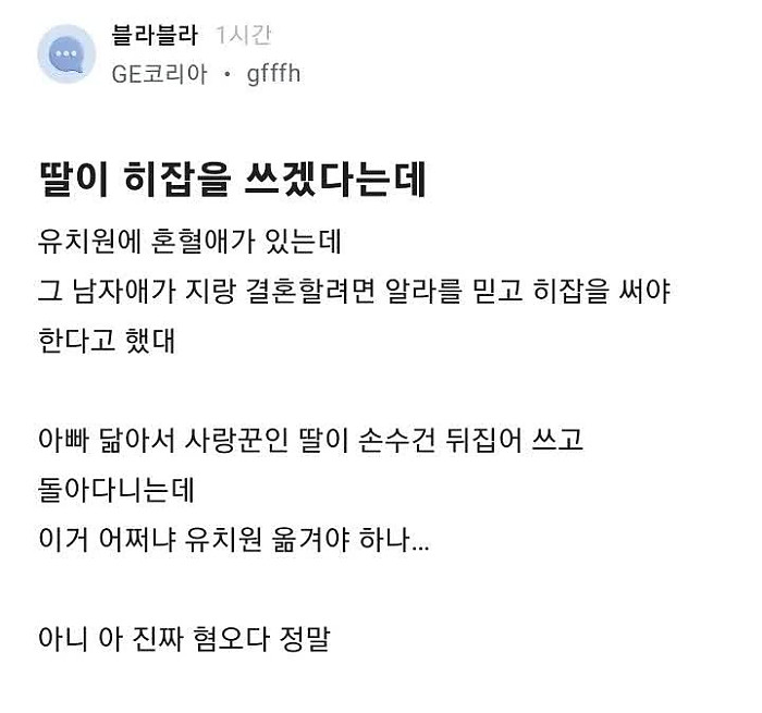 딸이 히잡을 쓰겠다는데 작성자 정보 불좀붙여봐라 작성 작성일 2025.08.14 11:04 컨텐츠 정보 1,984 조회 목록 본문 딸이 히잡을 쓰겠다는데 관련자료 댓글 0 등록된 댓글이 없습니다. 로그인한 회원만 댓글 등록이 가능합니다. 목록