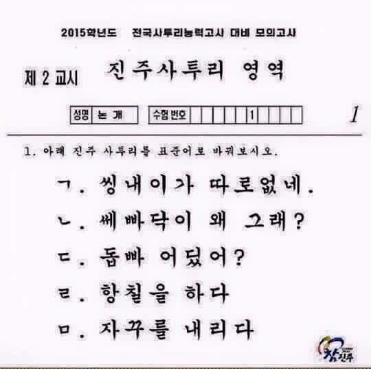 사투리 모의고사 작성자 정보 루브롱 작성 작성일 2025.08.08 11:38 컨텐츠 정보 1,327 조회 1 댓글 목록 본문 발음도 힘드네 ㅋ 관련자료 댓글 1 넌나의비타민님의 댓글 넌나의비타민 작성일 2025.08.08 11:46 자꾸를 내리다 지퍼를 내리다.. 이거만 알겠네 ㅋㅋㅋ같은 한국말인데도 어렵네 자꾸를 내리다 지퍼를 내리다.. 이거만 알겠네 ㅋㅋㅋ같은 한국말인데도 어렵네 로그인한 회원만 댓글 등록이 가능합니다. 목록